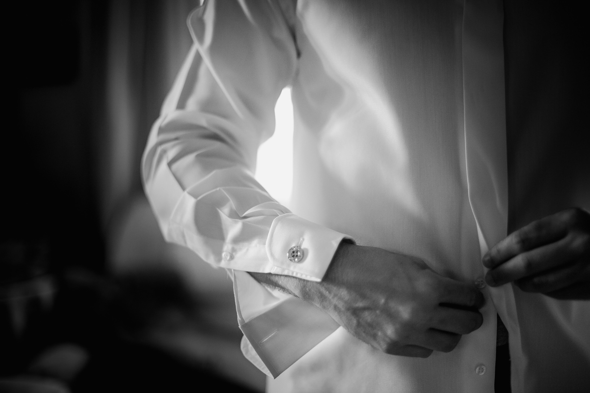 De pronto estamos inmersos en el “gran día”. Dos trajes cuelgan de una lámpara y ellos se preparan para celebrar su amor rodeados por completo de gente que también los aman. Y es que como fotógrafo de bodas, estoy acostumbrado a ver a los novios bien cuidados y rodeados de los suyos, pero nunca tanto como en la boda de Ale y Javi.