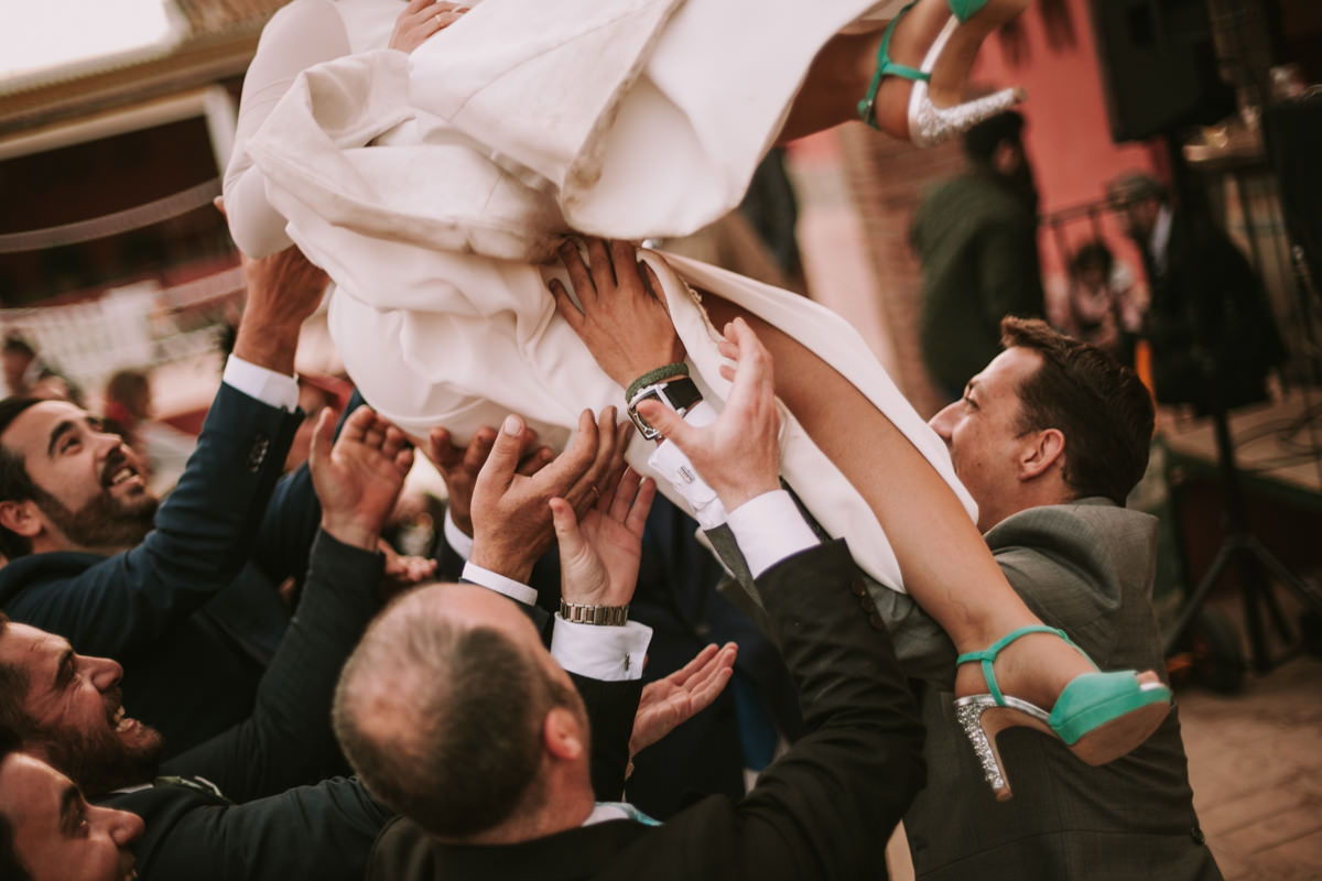 Un poco más tarde, la entrada a la celebración fue un espectáculo. Los novios hicieron el camino a la mesa bailando y todo el mundo se puso en pié a bailar entre risas y aplausos. Fue el comienzo de una fiesta que casi no tendría fin.